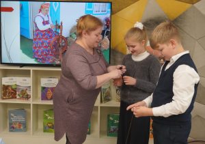 Во время познавательной и увлекательной игры “Аукцион ремесел” школьники узнали о многообразии белорусских ремёсел. Конкурс “Мотальщики” проверил их быстроту и ловкость: кто быстрее сможет намотать клубок ниток и познакомил ребят с таким видом как ручное и машинное прядение.