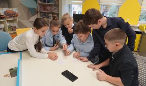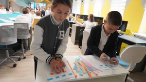 В следующем этапе игры ребята познакомились с ткачеством – одним из древнейших белорусских ремёсел, узнали про искусство вышивания и известную белорусскую вышивку. А в конкурсе “Ткачи” выяснили, кто из участников проявил наибольшие навыки, креативность и командную работу, создавая полотно из бумажных лент.
