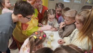Путешествуя по станциям, дети выполняли разнообразные затейливые задания вместе со сказочным Покусом: разгадали послание, написанное невидимыми чернилами, провели опыт с монетками и водой, проверили свою гибкость и мастерство в испытании с магической веревкой, изготовили воздушный пластилин по рецептам “Фиксиков” и даже стали настоящими учёными, поэкспериментировав с волшебной жидкостью! Мальчишки и девчонки показали свои умения, творческие способности, проявили фантазию и воображение.