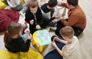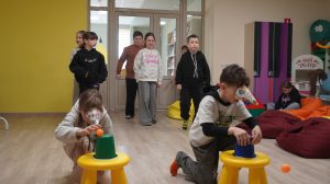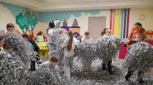 Вместе со сказочными героями мальчишки и девчонки окунулись в радужную, яркую игровую программу, насыщенную разнообразными творческими конкурсами, такими как “Цветной разбег”, “Модный подкид”, “Музыкальная шляпа”, “Ловкие художники”. С азартом выполняли весёлые задания от мудрой Бабы Яги и хитрого Волка, отгадали арт-загадки и составили арт-конструктор из слов на тему “Город фантазий”, где каждый мог проявить свою фантазию и воображение.