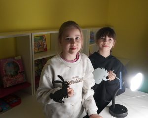 Ребята посмотрели спектакль театра теней о доброте, смелости и сообразительности “Палочка-выручалочка”. Но что особенно приятно – дети получили возможность самостоятельно поучиться управлять теневыми фигурками. Мальчишки и девчонки с удовольствием пробовали себя в роли актеров!