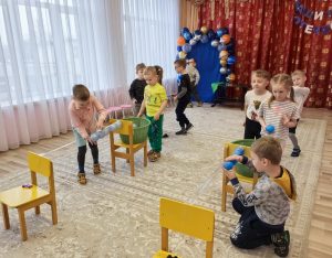 Дети с большим интересом и воодушевлением участвовали в различных игровых заданиях и конкурсах, которые помогли им лучше понять важность и значение этого праздника. Малыши разгадывали военные загадки, мечтали стать кем-то из военных – солдатами, командиром, разведчиком, лётчиком или медсестрой. Также ребята играли в подвижные игры, такие как: “Защитники Отечества”, “Построй понтонный мост”, “Найди предмет закрытыми глазами”, “Кто быстрее оденется”, “Попади в цель”, а также в эстафете “Полоса препятствий”.