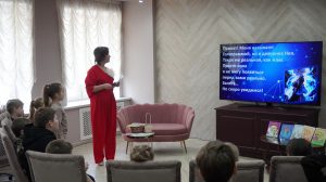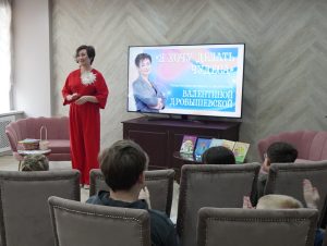 Валентина Станиславовна – член Союза писателей Беларуси, автор множества книг для детей и взрослых, сценарист, прозаик, педагог и филолог, с первых минут завоевала внимание мальчишек и девчонок и увлекла своим творчеством. Юные читатели с интересом знакомились с книгами автора, открывая для себя новые истории и героев. Мальчишек и девчонок ждала увлекательная интерактивная игра “Мегарасследование: виртуальность в реальности” по книге “Дая, Нея и Голограмма”, где они превратились в настоящих исследователей, разбирались с загадками, угадывали тайные предметы, танцевали, пели, стали героями экспромт-театра и разгадывали тайны виртуального мира, погружаясь в увлекательную историю вместе с героями книги.